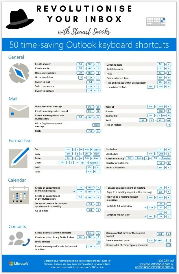 Click on image at right to download a copy of the 50 Outlook Keyboards Shortcuts Cheat Sheet