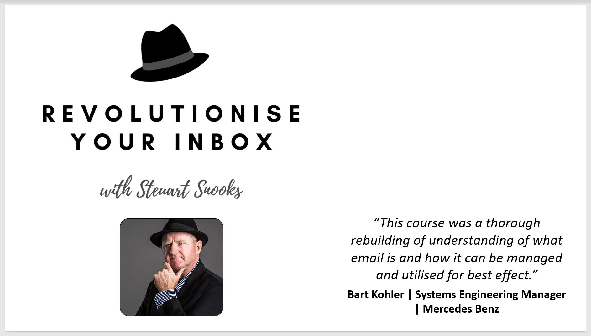 A life-changing program that transforms your experience when working with email. This short video explains the problems and impacts of email overload and an outline of the methodology developed over 15 years to address these issues. Please reach out to make contact Steuart Snooks if you have any questions after you have viewed the video.E-mail: steuart@steuartsnooks.com.au