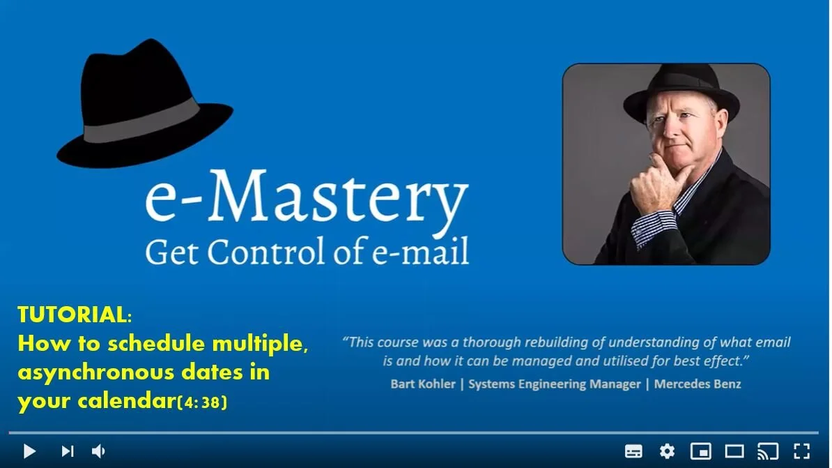This is a great time saver when you have to schedule multiple dates in your calendar that don’t fit a recurrence pattern. I showed how to do this to a mature-age administrator in a local council during a one day workshop recently and when she saw what was possible she said “Oooh, I could kiss you!”. Another lady called out from a large audience at a professional development presentation I was making at a university and said ‘“I’d like to offer you my first born”. See what you think by taking a look at this video for yourself and let me have your feedback (especially your first impression upon seeing this).
